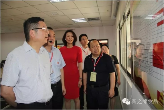 蔡建和一行先后參觀了賓之郎榮譽室、賓之郎自動化工藝制作車間、賓之郎食品安全風險防控室、賓之郎企業(yè)文化宣傳長廊和賓之郎黨群服務中心(黨群工作部、黨員會議室、黨群文娛室、黨群活動中心、心靈驛站等場所),詳細了解了賓之郎黨員組織管理情況、黨群活動開展情況及“兩學一做”專題培訓教育和企業(yè)經(jīng)濟發(fā)展情況。