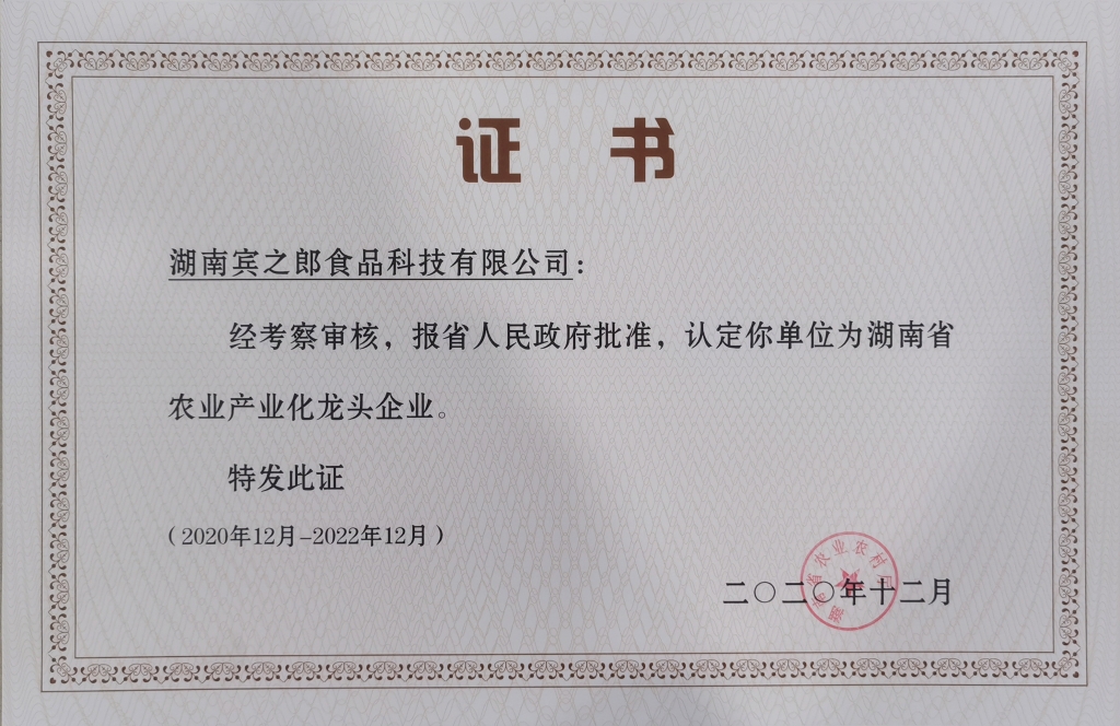 公司榮獲“國家流動人口健康促進示范企業(yè)”、“湖南省農(nóng)業(yè)產(chǎn)業(yè)化龍頭企業(yè)”、“湖南省萬企幫萬村先進民營企業(yè)”、“湖南省模范勞動關系和諧企業(yè)”、“湘潭市就業(yè)扶貧基地”。通過“國家高新技術企業(yè)”復評、“兩化融合管理體系”認證。公司技術中心獲得中國合格評定國家認可委員會頒發(fā)的CNAS實驗室認可證書。湘鄉(xiāng)子公司榮獲“湖南省就業(yè)扶貧基地”。公司黨委榮獲“先進黨組織”榮譽。董事長陳曉女士榮獲省、市工商聯(lián)兩級“履職考核優(yōu)秀獎”。【味中味枸杞檳榔】、【老湘潭枸杞檳榔】、賓之郎清爽蜜瓜味【爆珠檳榔】新品上市。