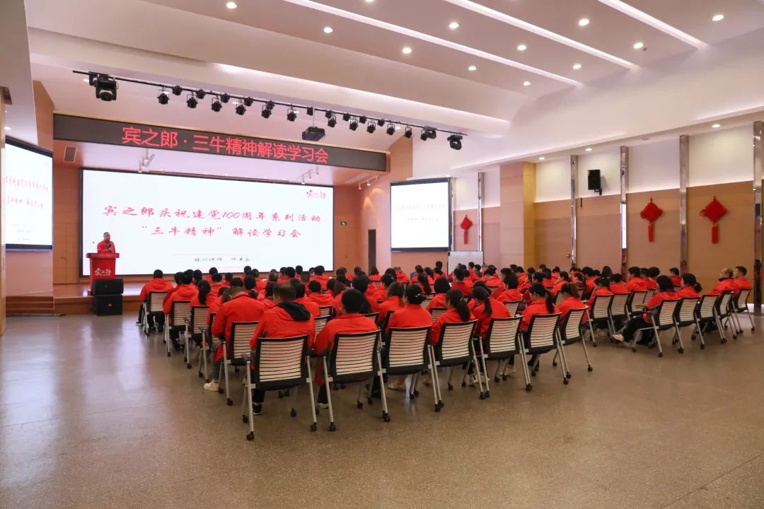 會上,何書記積極引導(dǎo)廣大干部員工圍繞學(xué)習(xí)“三牛精神”,立足崗位實際,暢談心得體會:“我們要大力發(fā)揚孺子牛、拓荒牛、老黃牛精神,以不怕苦、能吃苦的牛勁牛力,不用揚鞭自奮蹄,繼續(xù)為中華民族偉大復(fù)興辛勤耕耘、勇往直前,開拓進取、擔(dān)當(dāng)實干,以優(yōu)異成績慶祝建黨100周年,我希望賓之郎每個家人能夠?qū)⒆约旱睦硐肱c公司的理想融合在一起,進一步踐行‘企業(yè)發(fā)展、員工幸福、社會和諧’的企業(yè)文化價值觀念,創(chuàng)造新時代輝煌,犇向美好未來!”