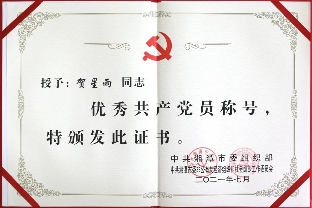 榮獲湘潭市兩新系統(tǒng)“優(yōu)秀共產(chǎn)黨員”稱號